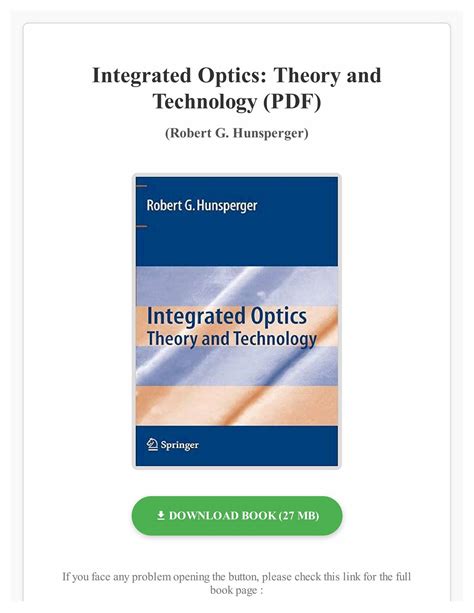 Read Integrated Optics Theory And Technology Solution Manual Kindle Editon By Click Button. Integrated Optics Theory And Technology Solution Manual it’s easy to recommend a new book category such as Novel, journal, comic, magazin, ect. You see it and you just know that the designer is also an author and understands the challenges involved with having a good book. You can easy klick for detailing book and you can read it online, even you can download it